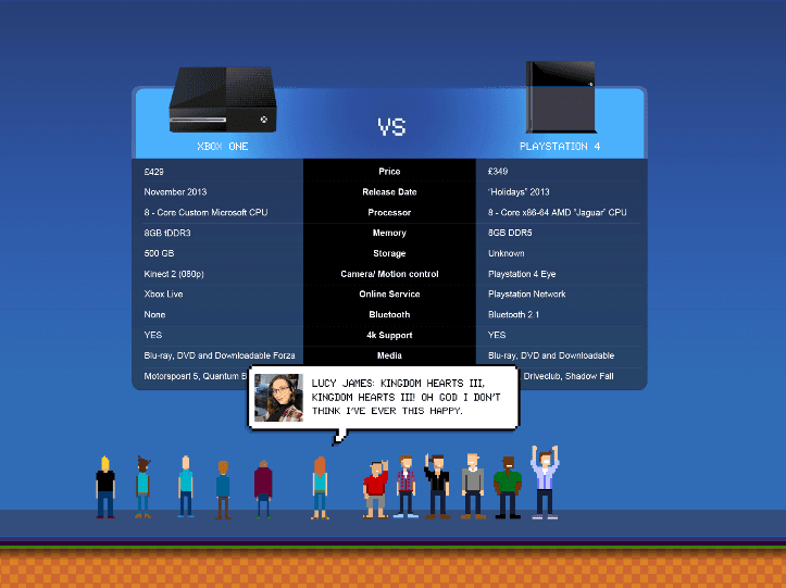As part of a creative campaign, our journalist Greg was transformed into a pixel art video game character. Visitors could log in via Twitter, choose their own pixel persona from a list of characters, and post live comments while they waited for the console’s big reveal — turning the anticipation into a playful, interactive experience.