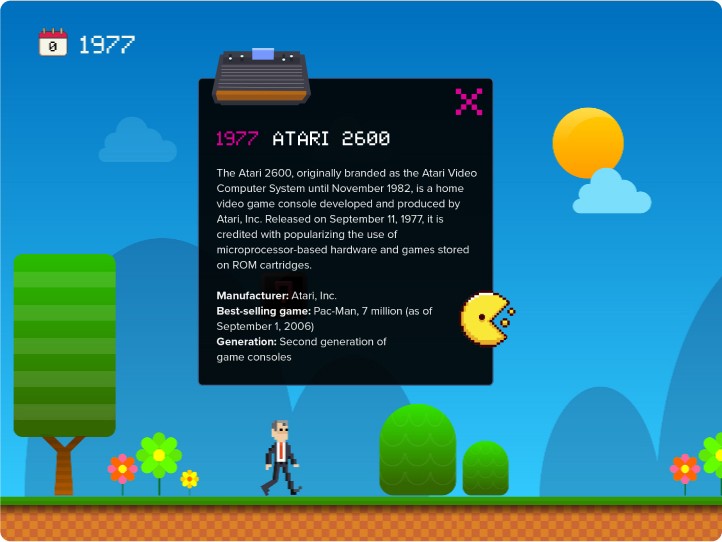 In response to the brief, our team developed a real game for iPad where users would drive our journalist Greg Milam into discovering games and consoles through history. Upon arriving at a sports arena in Los Angeles, viewers were invited to discover quickly the two main players in the market and their promises for the years to come.