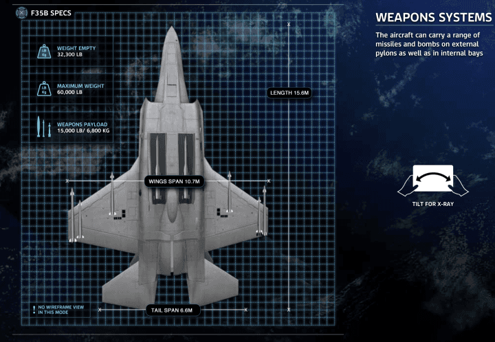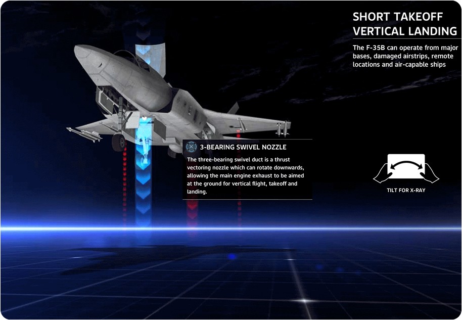 By simply playing, readers could learn deeper about its weapons bay, wings material and even look inside the engine by tilting the iPad sideways.
