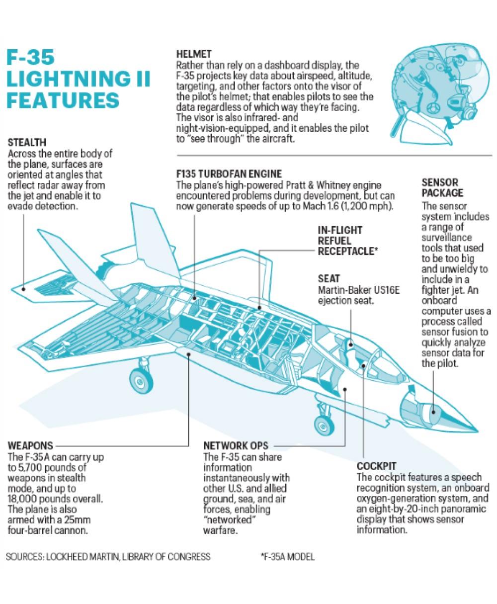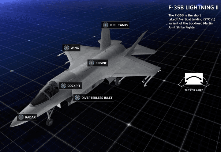 The Lockheed Martin F-35 Lightning II is an American family of single-seat, single-engine, all-weather stealth multirole combat aircraft that is intended to perform both air superiority and strike missions. It is also able to provide electronic warfare and intelligence, surveillance, and reconnaissance capabilities. All packed in a £79 million piece of machinery.